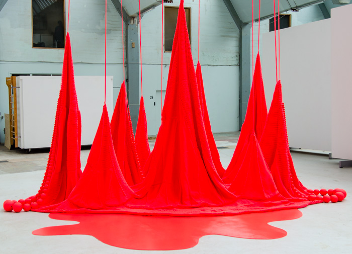 You see the result here. In the end I was invited by Isabel to exhibit along with her. My goal was to create a kind of baby book to show the island how it had come to be created. With mainly close-ups of hands knitting and working with shallow depth of field I tell the story of creation to complement the viewing of the actual art work. Here are a few more images from yesterday.