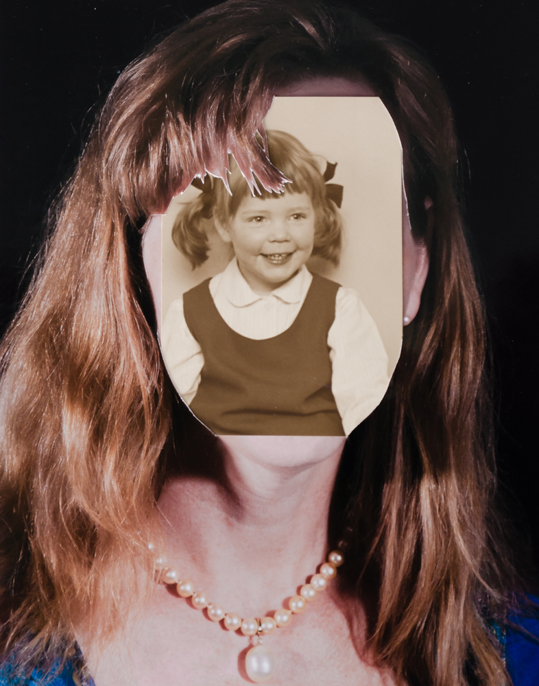 I took a current head shot, cut out so the picture of me around age three could be placed in the newer photo and re-photographed.