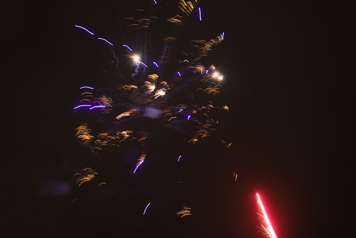 I found on New Year’s Eve that for photographing fireworks it’s not always what you see that adds the most to the overall effect – sometimes the best effect is what is not illuminated.