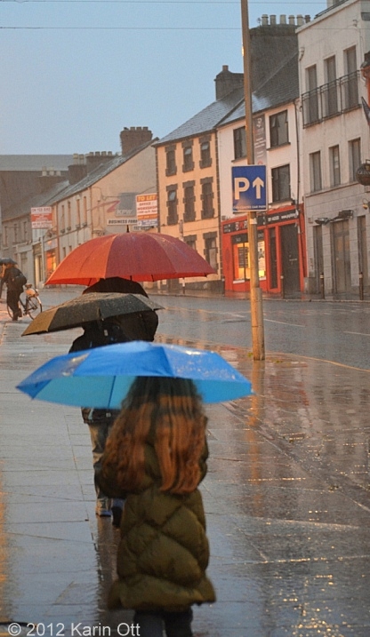 As we all know it’s surposed to rain in Ireland. In preparation I had spent quite a bit of time (and no money) securing my camera against that possibility. But as we walked through the rain in Galway on the way back to the hotel I just couldn’t resist the sight of the umbrellas. At mortal peril to my camera I got it from my bag, unwrapped it and managed to keep it under my own umbrella while shooting. Who cares if I got wet. The camera survived and I got the pictures 🙂