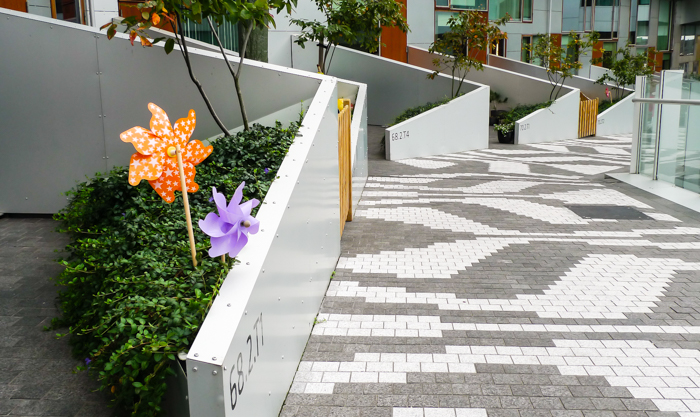 This path didn’t have a piece of fence thrown up last time I photographed here… All the little patios are supposed to have open access but the facts of life are different. There may be children or pets to keep in – or tourists to keep out. People eager to see the awarded architecture arrive by the bus loads every weekend and many do not feel shy about stepping onto people’s private patios to peak through the windows or shoots pictures. Because of this lack of privacy the pathway appears to have become a nuisance rather than a part of the community.